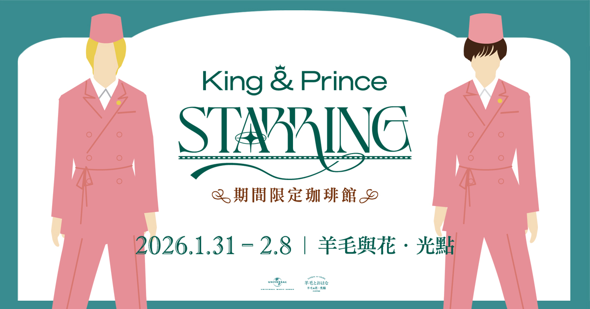 👑紀念King & Prince來台出席2026《超級巨星紅白藝能大賞》演出與第七張專輯《STARRING》發行,在舉行「King & Prince POP-UP STORE 2026 “STARRING” IN TAIPEI」台北快閃店之外,將同時設立「STARRING 期間限定珈琲館」💖